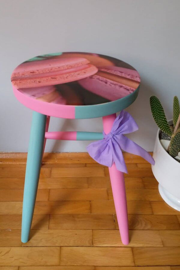 Ahşap dekoratif tabure çeşitleri. Renkli, desenli tabureler.
