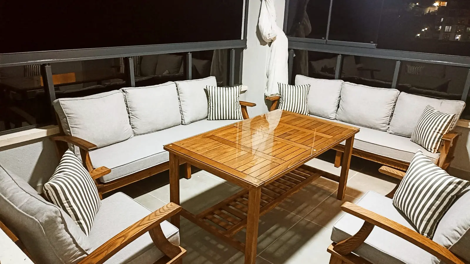 İskandinav Ahşap Oturma Grubu – Cam Balkon Bahçe Teras Koltuk Takımı